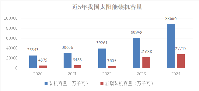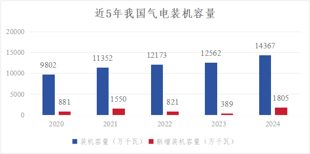 2024年,风力发电和光伏发电又是一个大爆发之年,全年累计新增风光发电装机达3.58亿千瓦,占全年新增发电装机总容量的比重达到82.6%,超过2023年的2.93亿千瓦,是历史上**新增装机规模超过3亿千瓦之年。风光合计装机规模达14.1亿千瓦,历史性超过煤电装机规模;合计发电总量合计达1.83万亿千瓦时,与同期第三产业用电量(18348亿千瓦时)基本持平,远超同期城乡居民生活用电量(14942亿千瓦时),显示出风光发电在我国能源替代中强大的生命力。