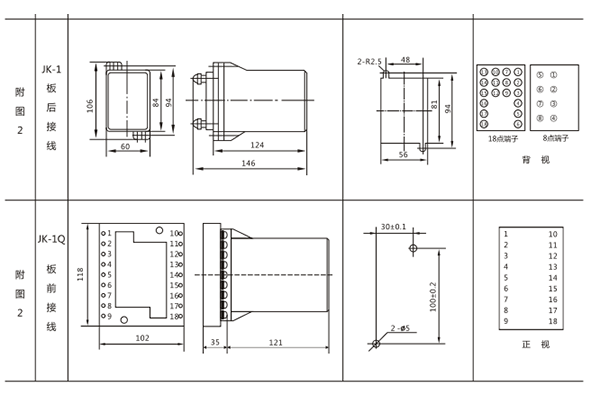 二、JZ-J-314静态中间继电器外形尺寸及开孔尺寸
